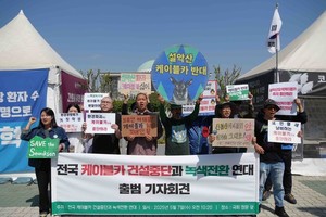[환경일보] 케이블카 건설 사업이 전국 각 지역에서 무분별하게 추진되고 있다. 케이블카 사업은 자연공원 및 보호지역, 도시숲의 생물다양성을 훼손하고 국민의 혈세를 낭비하는 경제성이 없는 사업임에도 전국 10여 곳의 지자체에서 지속적으로 추진과 중단을 반복하며 불필요한 사회적 갈등을 야기하고 있다.5월 7일 국회 앞에서 케이블카 건설 중단을 요구하고 있는 11개 지역대책위가(설악산(양양), 신불산(울산), 지리산(구례, 산청, 남원), 무등산(광주), 치악산(원주), 황령산(부산), 보문산(대전), 남산(서울), 주흘산(문경)) 모여