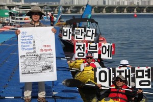 [환경일보] 지난 7월11일(금) ‘이재명 정부에 바란다’ 한강캠페인이 열렸다. 부산, 울산, 경주, 광주, 속초, 서울 등에서 참가한 전국의 지역환경운동연합 활동가, 환경운동연합 바다위원회와 환경보건시민센터 회원, 석면암 피해자와 석면해체 감리전문가, 가습기살균제 유족 및 대학의 환경전문가 등이 고무카약을 타고 전국 주요 환경문제의 해결을 요구하는 한강수상캠페인을 전개했다. 환경보건시민센터는 이들 단체들과 ‘이재명 정부에 바란다’ 시리즈 캠페인을 통해 가습기살균제 참사, 후쿠시마 핵폐수 해양투기, 석면, 라돈침대, 영풍석포제련소