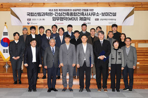 [환경일보] 산림청 국립산림과학원(원장 김용관)은 20일(목), 간삼건축종합건축사사무소, 보미건설과 함께 국내 최초 목조아파트 건립을 위한 업무협약을 체결했다고 밝혔다.국내 최초로 시도되는 목조아파트는 서울특별시 성북구 종암동 81-188 일대의 부지에 개운산마을 가로주택정비사업조합이 건설을 추진한다. 전체 3개동 130세대 가운데 2개동의 18세대가 목구조로 건설될 예정이며, 2028년 6월 사용 승인을 목표로 한다.목구조로 18세대를 건설할 경우, 기존 철근콘크리트 구조 대비 탄소배출량이 약 80% 감소해 약 4068톤의 이산화