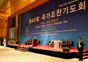 ‘한반도와 세계평화 그리고 국민통합과 경제번영을 위해’라는 기도제목과 ‘한국이여 일어나 빛을 발하라’ 주제로 이명박 대통령, 이용훈 대법원장을 비롯 국회의원, 해외국가지도자와 동포 등 각계각층의 국가지도자 4000여 명이 참석한 제40회 국가조찬기도회가 은혜롭게 개최됐다.