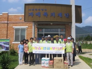 [#사진3] 농촌공사 직원들은 2005년부터 인연을 맺고 업무에 지장이 없는 시간을 할애해 이곳 장애우들의 임가공 부업을 도와주는 한편 복지시설의 내부 및 외부 주변청소 등을 통해 아름다운 마음을 전해오고 있다.