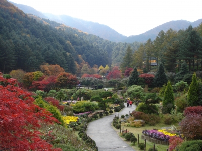 경기도 가평군 축령산 자락에 위치한 아침고요수목원에 가을이 깊었다. 기상청은 지구온난화로 인해 단풍 시기가 중부지역은 예년보다 3일, 남부지역은 예년보다 2일쯤 늦어지겠다고 밝혔다. 설악산은 오는 18일 절정을 이룰 것으로 예상되며 치악산은 9일, 내장산은 21일에 시작된다. 서울지방의 단풍은 31일께 절정을 이룰 것으로 예상된다.<사진=아침고요수목원> ▲ 분재정원 단풍 ▲ 아침광장의 가을단풍 ▲ 에덴정원 가을 ▲ 천년향과 단풍 ▲ 하경전망대 가을 ▲ 하경정원 국화 ▲ 하경정원 전경1 ▲ 하경정원 초가을