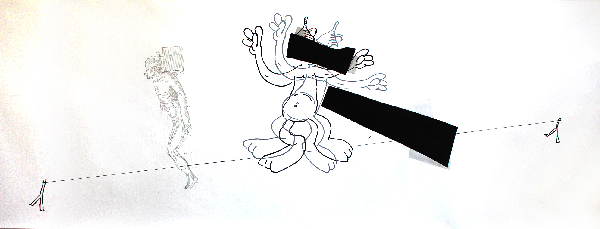 이방 르 보젝이 만화처럼 그려낸 줄 타는 예술가의 모습은 그 옆에 해부학적으로 그려진 인간 신체 드로잉과 대비된다. 월 드로잉과 함께 하바네라 스타일의 탱고음악인 유칼리(Youkali)를 배경으로 광대장난감이 끊임없이 재주를 부리는 장면을 담은 비디오 시퀀스는 익살스럽고 경쾌한 느낌을 주며 작가의 프렌치적인 유머와 비평을 엿볼 수 있다.