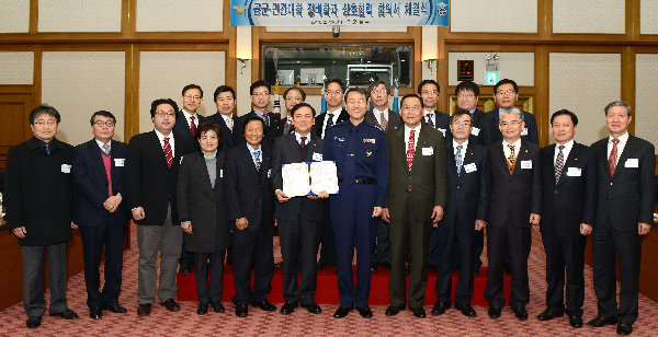 공군은 지난 11일 공군본부에서 공군 군수참모부장 신재현 소장과 20개 대학 총장 및 학과장이 참석한 가운데 상호협력 합의서를 체결하고 세부 지원사항을 협의했다.