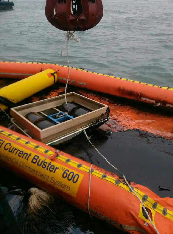 이에 따라 공단은 방제세력을 3개의 선단으로 재배치하고, 강한 조류에도 기름을 가둬둘 수 있는 그물포집식 오일붐(Current Buster)을 투입하여 방제작업을 실시하고 있다.