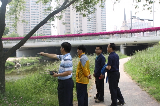 특히 올해 들어서는 쇄굴(바닥이 파이는 현상)면 보수 129㎡, 돌계단 신설 및 정비 5개소, 벤치신설 3개소 등 하천정비에 지속적인 노력을 기울이고 있고, 장마철 집중호우 시 하천으로 유입되는 각종 생활쓰레기 및 하수의 역류 방지를 위한 쓰레기 수거 노력도 병행하고 있다.