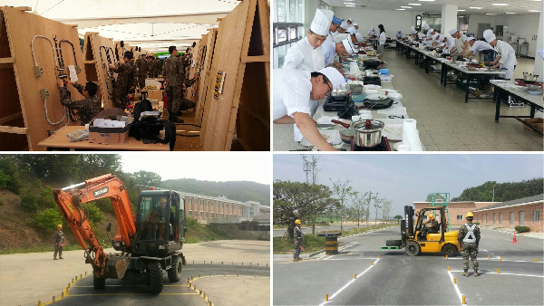 | ▲(왼쪽부터 시계방향으로) 건축목공, 조리, 굴삭기 운전, 지게차 운전 <사진제공= 국방부> |