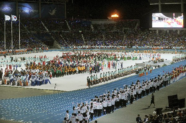 세로토닌 드럼클럽 200명이 두드리는 힘찬 북소리가 울려 퍼지는 가운데 45개국 선수단이 자원봉사자들과 함께 입장했으며 차기 개최국인 인도네시아는 드라마틱한 무술동작과 젊은이들의 혼례 무용이 담긴 전통적인 춤으로 열정적인 무대를 선보여 관람객들의 시선을 사로잡았다.