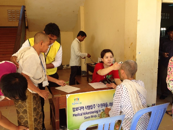 시엠립주에 위치한 프놈끄라옴 수원마을을 찾아 의료 활동을 하는 의료봉사단 |