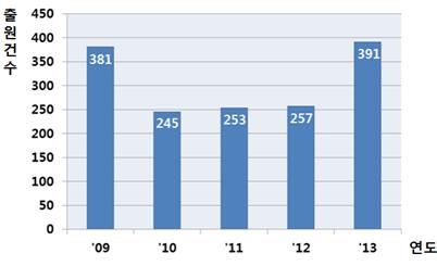 최근 5년간(2009~2013년) 음식쓰레기 처리기 특허출원 동향 <자료제공=특허청> |