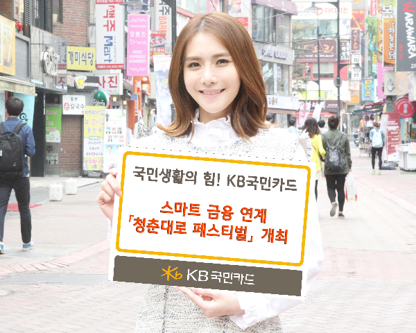 [환경일보] 석진하 기자 = KB국민카드(www.kbcard.com / 사장 김덕수)가 23일 오후 2시부터 서울 대학로에서 모바일 카드, 비컨 서비스 등 스마트 금융 체험과 길거리 공연 등 다양한 문화 공연이 결합된 이색 문화 행사 청춘대로 페스티벌을 개최한다.