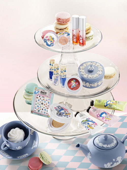 ‘비욘드 앨리스 인 글로우 컬렉션’은 ’이상한 나라의 앨리스’ 탄생 150주년을 기념해 출시됐으며, 동화 속에 등장하는 ‘티 파티(Tea party)’ 스토리에서 영감을 받아 디자인된 쿠션 파운데이션, 립틴트, 섀도우, 립&치크, 핸드크림, 네일 키트 등 메이크업 제품 6종으로 구성됐다.