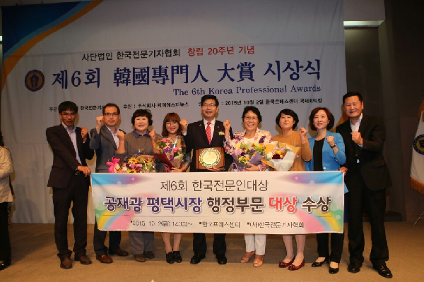 한편 공재광 평택시장은 “오늘 이렇게 권위있는 큰 상은 평택시민께서 받아야 마땅한데 제가 받게 되서 송구스럽다”며 “이 상은 46만 평택시민과 1,700여 공직자들이 함께 노력한 결과물이라 생각한다”며 “앞으로 대한민국 경제신도시 평택을 전국에서 가장 멋진 도시로 발전시키는데 최선을 다하겠다”고 수상소감을 밝혔다.