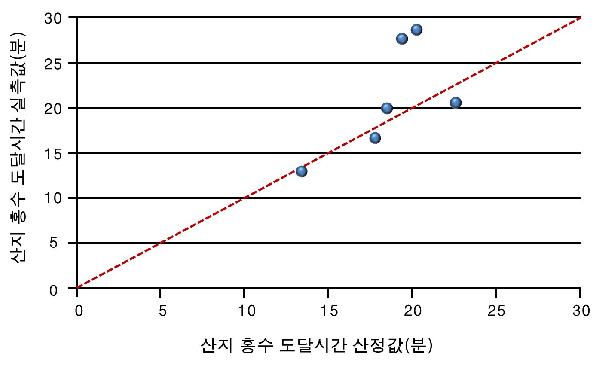 산지 홍수 도달시간 실측값과 산정값의 비교<자료제공=국립산림과학원> |