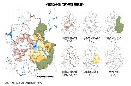 이는 경기도 146개 기업을 대상으로 한 조사결과로, 기업규제로 인한 총 투자 차질 규모 1조 8,449억 원 중 자연보전권역 규제로 인한 규모는 1조 2,897억 원, 상수원보호구역 규제로 인한 규모는 150억 원으로(김군수·김정훈(2014), 기업규제로 인한 경기도 투자차질의 경제적 손실) 조영무 경기연구원 연구위원은 “팔당상수원 보호를 위해 효율적이고 지속가능한 규제로 전환해야 한다”고 말했다.