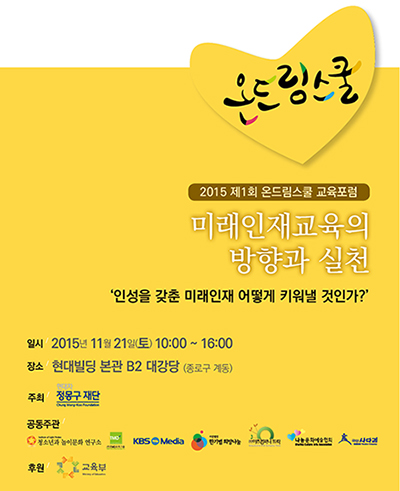 재단의 미래인재 양성 프로그램인 '온드림스쿨'의 성과와 의미를 공유하는 자리인 교육포럼은 △청소년 창의인성 함양 및 진로탐색을 위한 동아리 활동 △교육격차 해소 및 농산어촌 인재양성을 위한 방과후 학교활동 △더불어 사는 행복한 인간을 기르는 놀이와 인성교육의 3개 세션으로 진행된다.