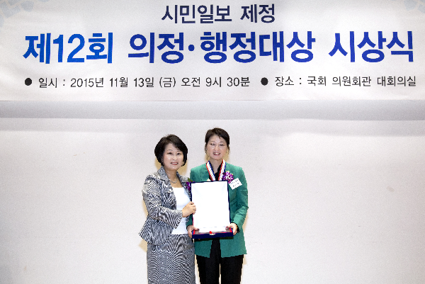 서초구의회 최유희 의원은 11월13일(금) 국회 의원회관에서 열린 제12회 의정·행정대상을 수상하는 영예를 안았다. <사진제공=서초구> |