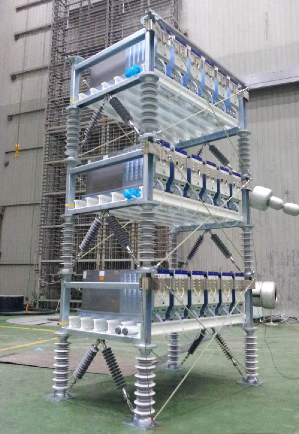 컨테이너 안에 들어가는 MMC 스태콤 컨버터 벨브의 모습. |