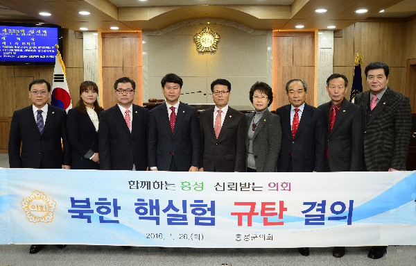 [홍성=환경일보] 신현구 기자 = 홍성군의회(의장 이상근)는 지난 26일 오전 군의회 본회의장에서 북한의 4차 핵실험규탄 결의안을 상정해 채택했다.