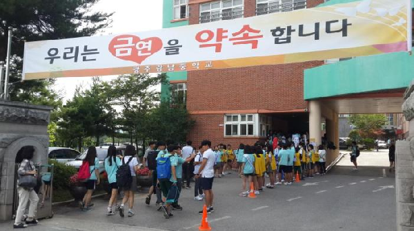 학생들은 “담배 없는 건강한 광남중학교”라는 슬로건 아래 피켓과 어깨띠를 착용하고 등교하는 교직원과 학생들을 대상으로 금연의 중요성을 알렸다.