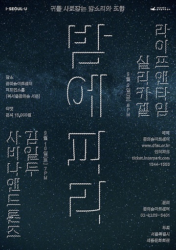 [환경일보] 나영호 기자 = 세종문화회관(사장 이승엽)이 운영하고 있는 꿈의숲아트센터에서는 9월9일, 10일 양일간 4팀의 뮤지션과 함께하는 가을밤 콘서트 ‘밤에 피리’를 개최한다.