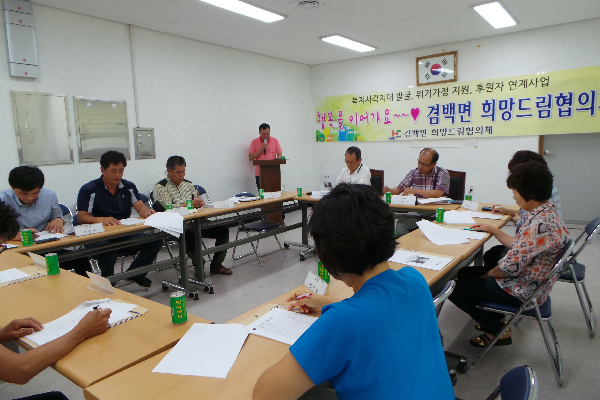 이날 정기회의는 새롭게 구성된 제2기 희망드림협의체 위원을 위촉하고 2016년 사업운영 계획, 협의체 활성화 방안, 추석 명절맞이 이웃돕기 방안에 대하여 논의하는 순으로 진행이 되었다.