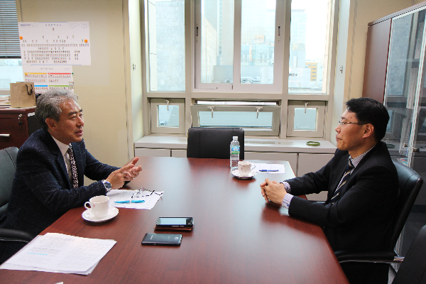 | ▲대담중인 김익수 편집대표(왼)와 이형종 국장 |