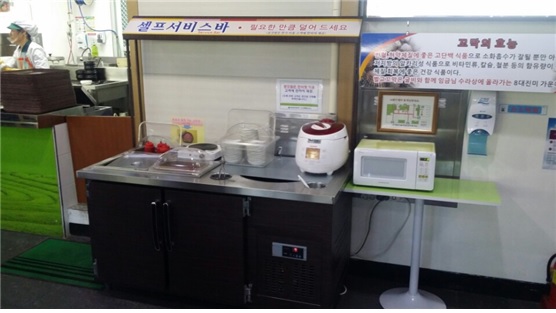 ‘무료 셀프서비스바’에는 고객들이 원하는 만큼 가져다 먹을 수 있도록 밥과 석박지, 김치, 오이고추, 된장 등의 반찬을 항상 비치해 화물기사를 비롯해 휴게소를 방문한 고객들의 만족도가 높다.