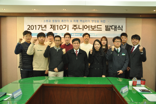 이번에 선발된 10명의 주니어보드 10기 위원들은 현업 역·사업소에 근무하는 입사 3년 이내의 직원들로 사무영업, 승무, 시설 등 각 분야별로 고르게 구성되어 있다.