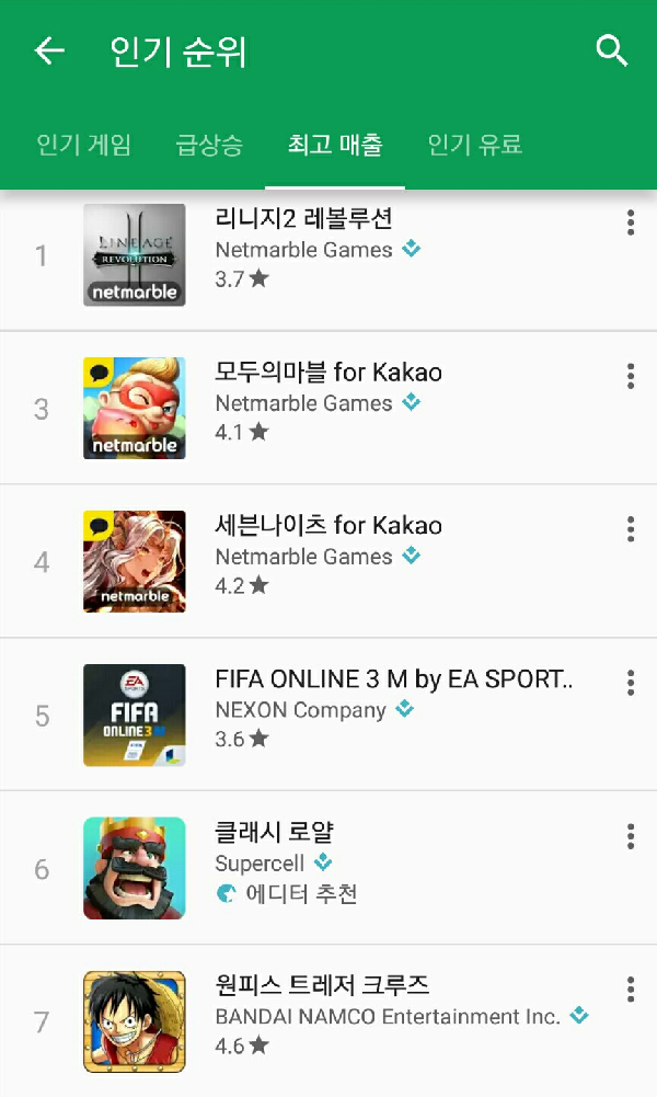 리니지2 레볼루션의 경우 2주만에 1000억원의 매출을 올리는 등 급속도로 성장하는 모바일 게임시장의 규모를 증명하고 있다. <사진=구글스토어 캡쳐> |