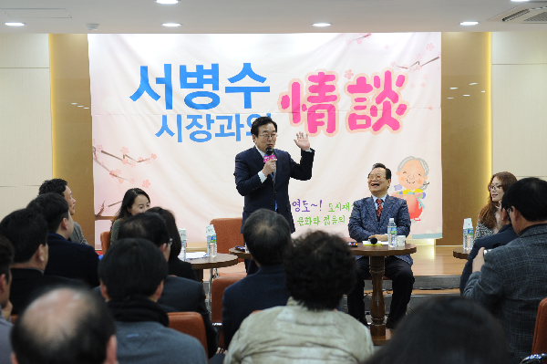 이어 서 시장은 동삼동 새마을금고에서 '보물섬 영도, 도시재생으로 문화와 젊음의 옷을 입히다'라는 주제로 현장소통 정책토크를 진행했다.