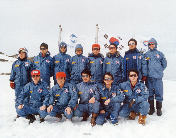 | 국내 최초의 남극기지 월동연구대인 1차 월동대 모습 <사진제공=해양수산인재개발원> |
