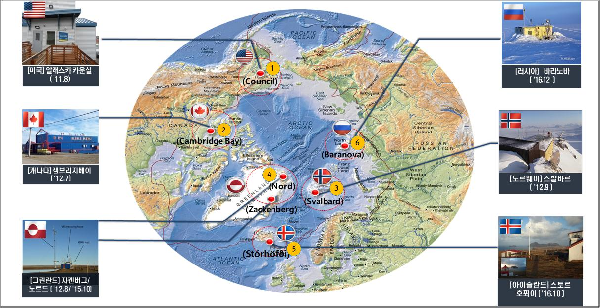 환북극 동토층 관측 거점 확보 위치도 |