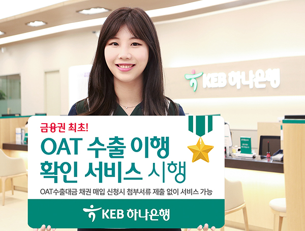 [환경일보] 오성영 기자 = KEB하나은행(은행장 함영주)은 금융권 최초로 OAT(Open Account Transaction) 방식의 수출대금채권 매입 시, 선적 이행 여부를 자동으로 확인 할 수 있는 『OAT 수출이행 확인 서비스』를 시행한다고 25일 밝혔다.