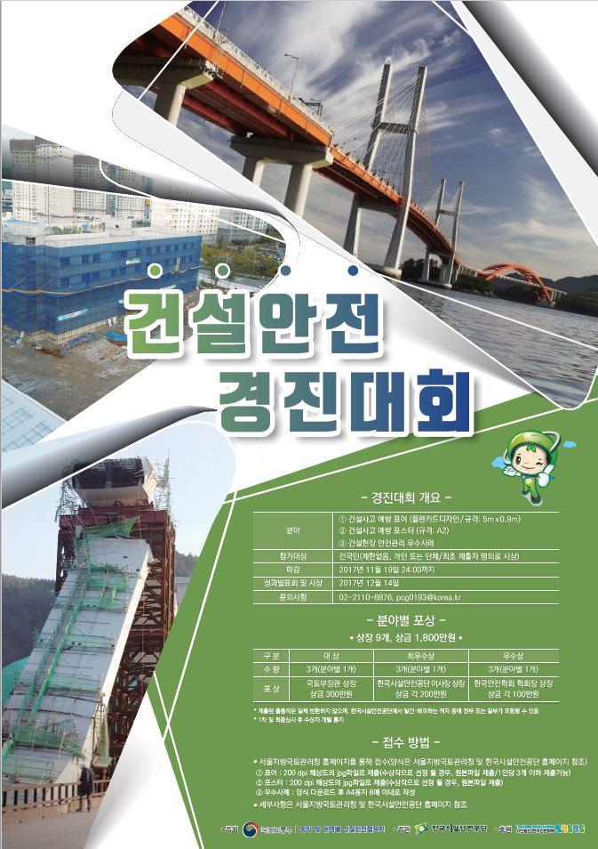 이번 경진대회는 ① 건설사고 예방 표어(현수막 디자인) ② 건설사고 예방 포스터 ③ 건설현장 안전관리 우수사례 등 3개 부문을 대상으로 실시하게 된다.