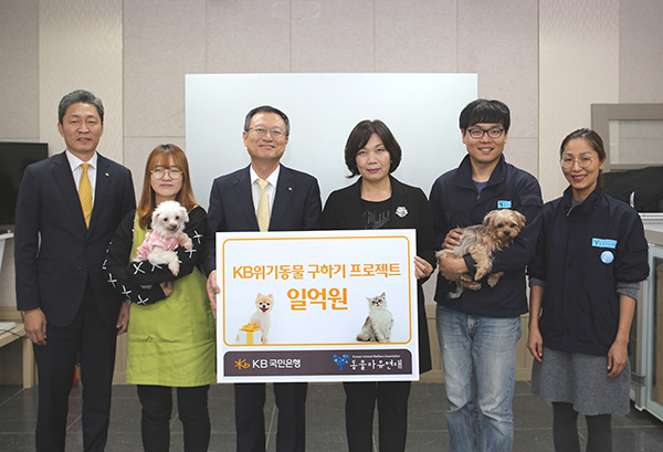 [환경일보] 오성영 기자 = KB국민은행(은행장 윤종규)은 지난 12일, 동물자유연대 남양주반려동물복지센터에서 「KB위기동물 구하기」 캠페인을 통해 모금된 일억원을 동물자유연대에 전달했다고 밝혔다.