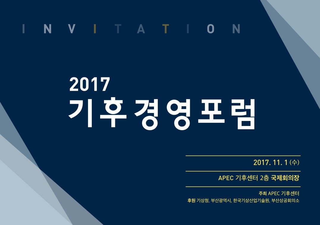 이번 2017년도 기후경영포럼은 APEC기후센터가 주관하고 기상청, 부산시, 한국기상산업기술원, 부산상공회의소가 후원한다.