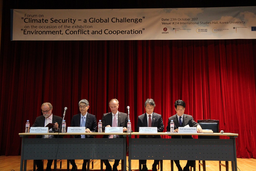기후환경포럼은 ‘기후 안보-글로벌 챌린지’를 주제로 개최됐으며, 이 날 포럼에는 ▷박성훈 고려대 KU-KIEP-SBS EU센터장 ▷안병옥 환경부 차관 ▷슈테판 아우어 주한독일대사 ▷김찬우 외교부 기후변화대사 ▷미하엘 라이터러 주한유럽연합대사 ▷정서용 고려대학교 국제학부 교수가 참석해 기후변화대응을 위한 세계적 흐름과 노력을 공유했다.