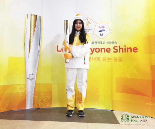 지난해 11월 제주도 천지연 폭포 200m 구간의 주자로 김혜승 학생(브랭섬홀 아시아, 10학년)이 나섰다. ‘모두를 빛나게 하는 불꽃’ 이라는 주제로 진행되고 있는 평창동계올림픽 성화봉송은 평화의 의미를 담은 7500명의 주자와, 2018평창올림픽을 상징하는 2018명의 지원주자로 구성되었다.