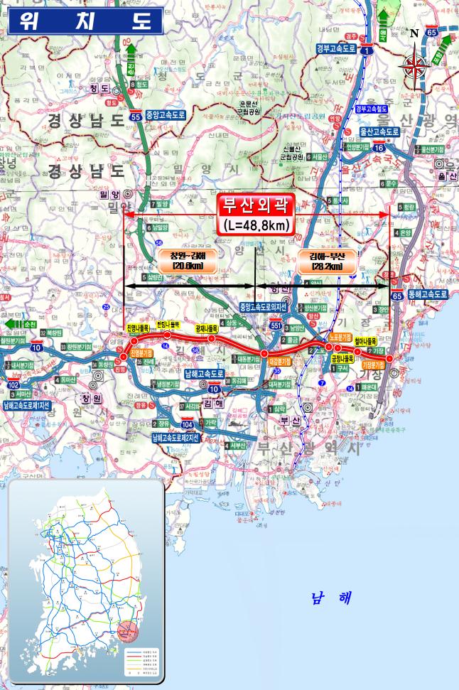 * 김해 진영~부산 기장 : 거리단축 69.9㎞→48.8㎞(20㎞), 시간단축 69분→29분(40분)