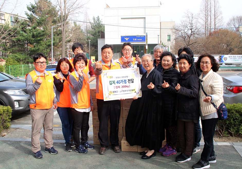 [과천=환경일보] 김남주 기자 = 과천시 중앙동행정복지센터는 29일 원불교 과천교당에서 후원한 김치 200kg을 중앙동의 독거노인, 저소득가정 등 40가구에 전달했다.