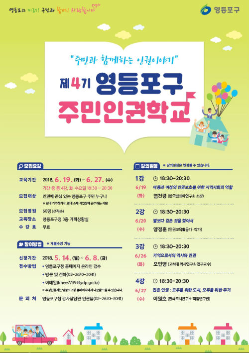 [환경일보] 심영범 기자 = 인권 이해의 첫걸음, 영등포구 주민 인권학교가 개강한다.