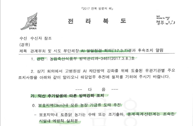 다음 날인 28일 참사랑농장은 AI 음성 판정을 받았지만, 익산시는 ‘예방적 살처분’이란 명목으로 3월10일 살처분 명령을 내렸다. 참사랑 농장이 발생 농장에서 3㎞ 이내에 위치한 ‘보호지역’이라는 이유 때문이었다.