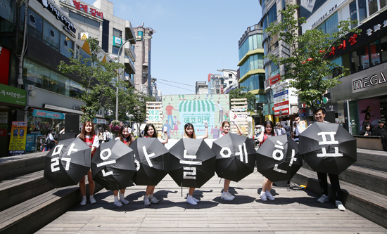 ‘축제’ 형식으로는 ▷이화여대 응원단 ‘파이러스’의 ‘미세먼지 날려버려’ 응원 캠페인 ▷올 댓 리듬의 방독면 미세먼지 탭댄스 퍼포먼스 ▷시민들이 직접 만든 제품을 판매하는 시민 참여 플리마켓 ▷에코마켓 등이 펼쳐졌다.