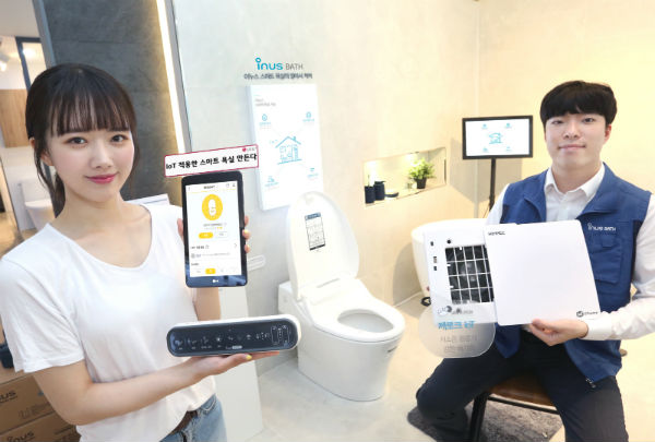 스마트 욕실 서비스는 스마트폰으로 손쉽게 제어할 수 있는 IoT 비데일체형 양변기와 환풍기가 포함되어있는 욕실인테리어 상품이다. 이 두 제품은 와이파이 환경이면 이통사와 상관없이 LG유플러스 홈IoT 플랫폼인 ‘IoT@home’ 애플리케이션과 연동해 사용할 수 있다.