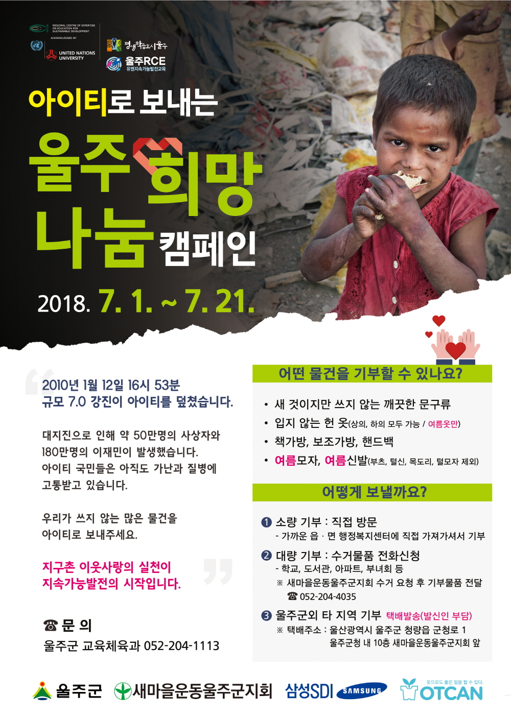 울주군, "아이티로 보내는 울주희망나눔 캠페인"