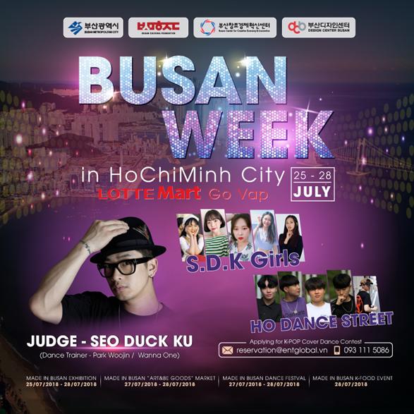 ‘BUSAN WEEK IN 호치민’은 7월 25일 수요일부터 28일 토요일까지 총 4일간 진행되며, 부산청년예술가 작품전시부터 부산의 중소기업 제품(BE GOODS)&ART상품 플리마켓, K-POP댄스공연, K-FOOD시식&상담회 총 4가지 콘텐츠로 행사가 진행될 예정이다.
