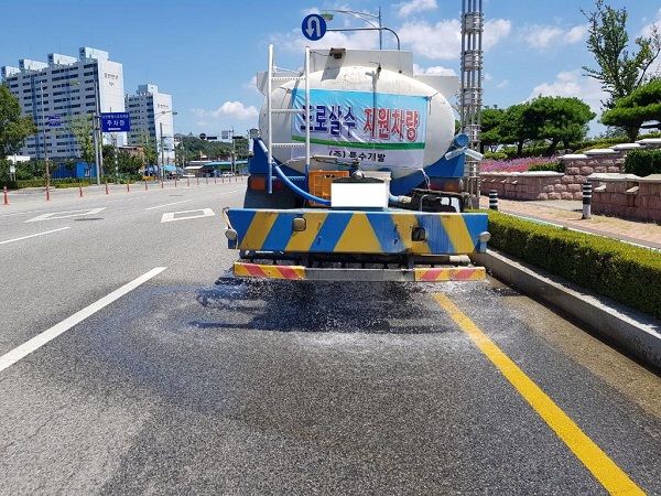 [김천=환경일보] 정성훈 기자 = 연일 폭염 특보가 장기화 되는 가운데, 김천시 관내 민간 건설사들도 폭염대응에 동참하기 위해 도로면 온도 저감을 위한 추가 살수 지원에 나섰다.
