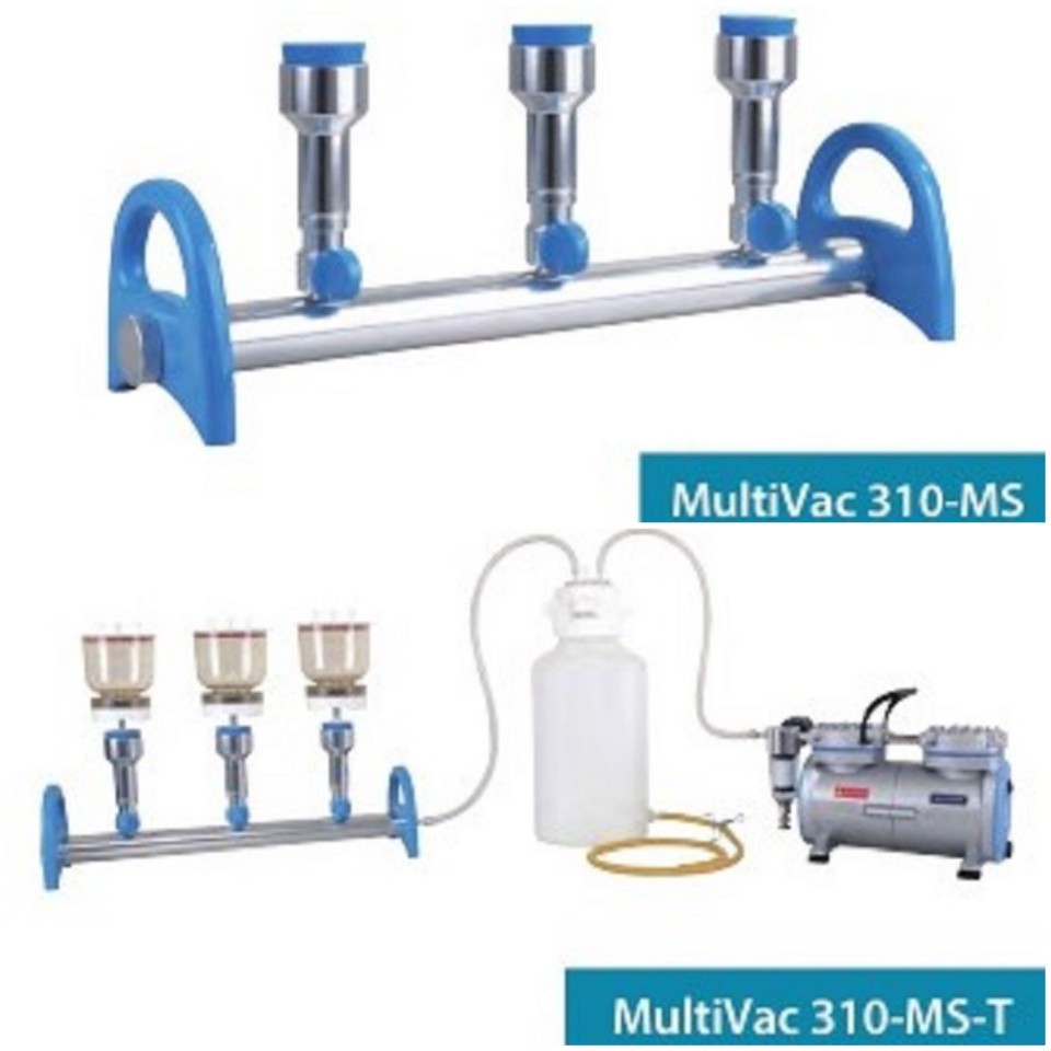 대형표본에 대해 특수설계된 메니폴드 multivac 310-MS-T는 대규모 검체 여과를 위한 경제적인 모델이다. 이 시스템에는 진공 펌프, 매니폴드, 폐기물 병 및 필터 홀더가 포함된다.