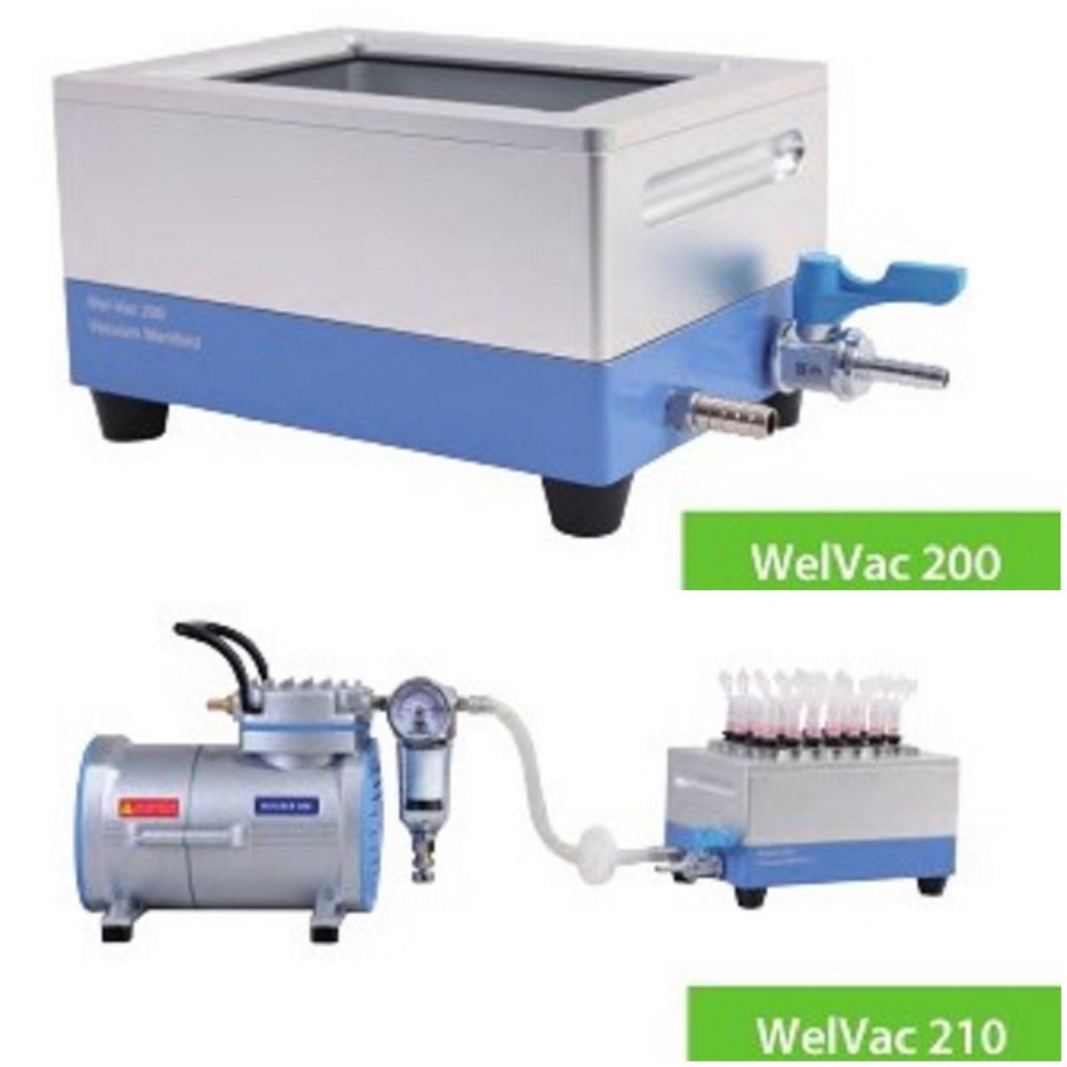 매니폴드를 진공 소스에 연결하면 시스템은 분사 솔루션, 작동 및 정지 원심분리 없이 빠르게 연속 분리될 수 있다. 독특한 디자인의 칼럼 어댑터 보드 및 루어 커넥터를 통해 WelVac 200은 다양한 종류의 원심분리 튜브와 96웰 마이크로 플레이트와 호환되며 DNA정화, RNA정화, Gel 정화, PCR 정리 등에 사용된다.
